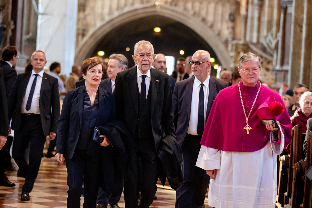 Mit einem "Requiem für seine Heiligkeit Papst Franziskus" nahm Österreich am Montagabend offiziell Abschied vom Papst. Dem Gottesdienst stand der Vorsitzende der Österreichischen Bischofskonferenz, Erzbischof Franz Lackner vor. Mit ihm konzelebrierten die heimischen Bischöfe. Die Politik war an erster Stelle von Bundespräsident Alexander Van der Bellen und Bundeskanzler Christian Stocker vertreten. Zahlreiche Gläubige gaben dem Papst im vollen Dom ebenfalls die letzte Ehre